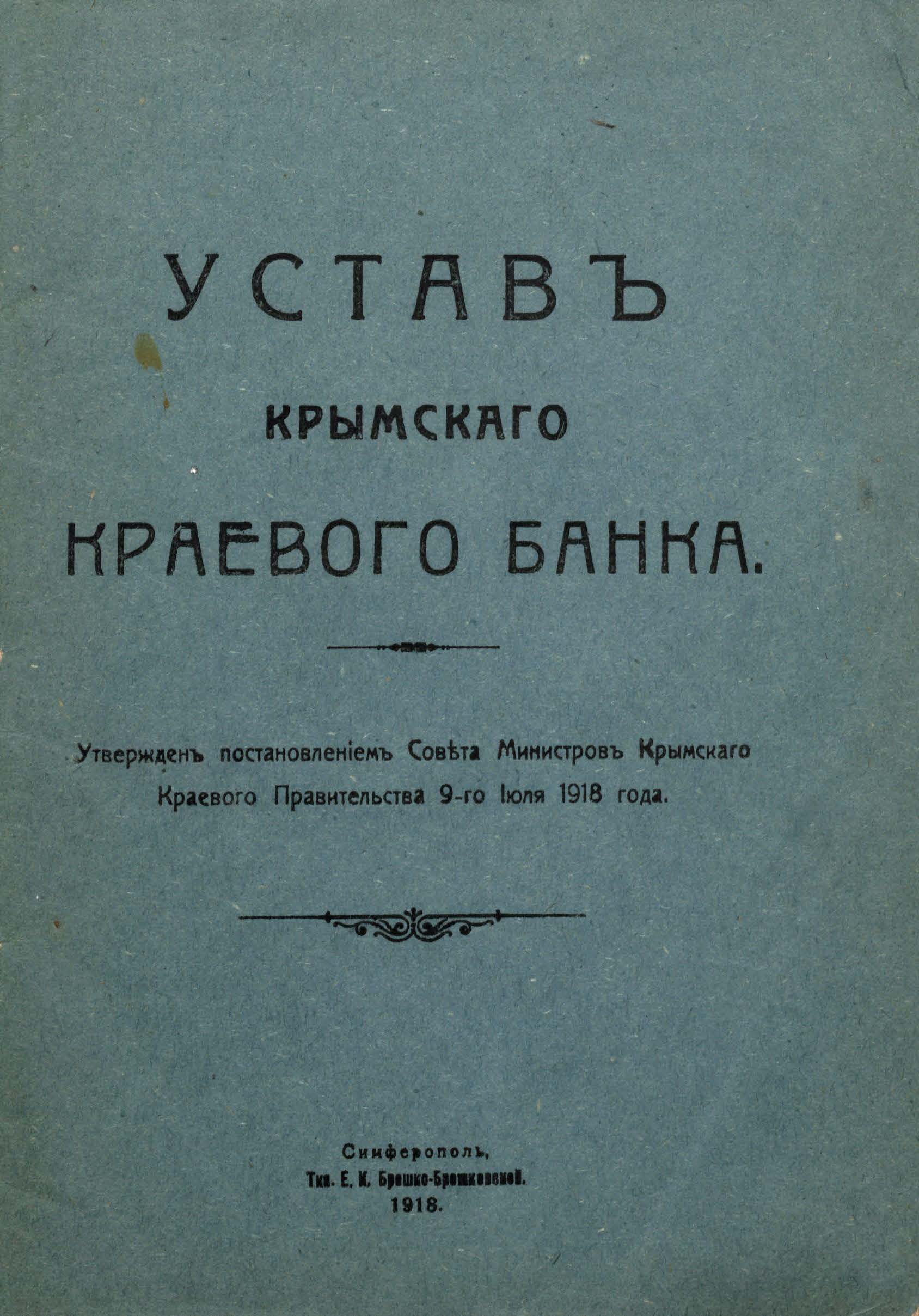 В марте 1918 года в Симферополе из отделений Государственного и Крестьянского Поземельного банков был образован Краевой Государственный банк. Он разместился в здании на Екатерининском проспекте, 14 (в настоящее время — ул. Карла Маркса). Руководителем банка был назначен бывший управляющий Таврическим отделением Крестьянского Поземельного банка Николай Леонидович Грандмезон. Под его руководством в Симферополе была оборудована правительственная литография — начался выпуск крымских денежных знаков.