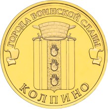 - In denomination of 10 Roubles — «Kolpino» of the series «Towns of Martial Glory».