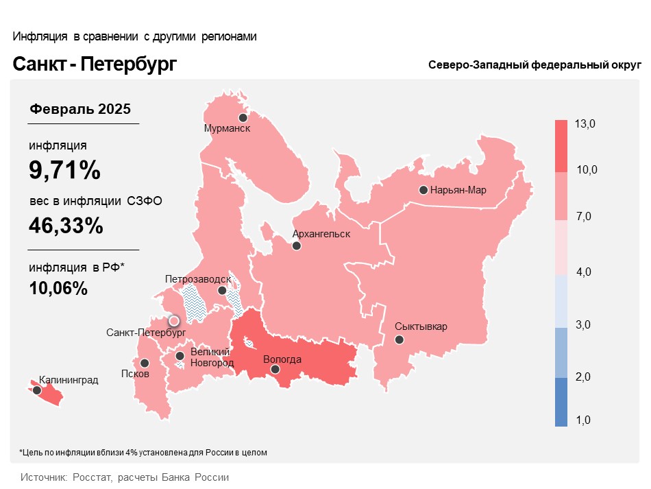 Информационно-аналитический комментарий об инфляции в Санкт-Петербурге в феврале 2025 года