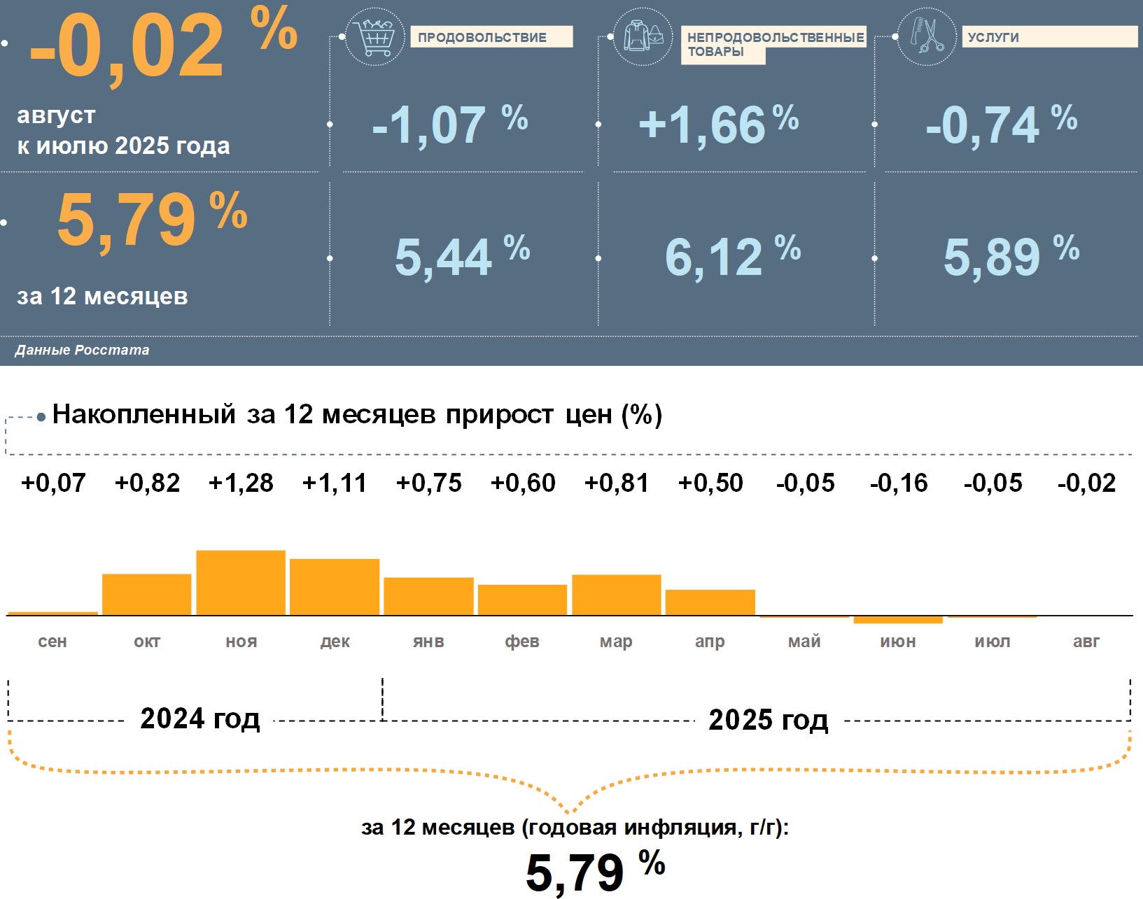 Цены в Чеченской Республике в августе 2025 года, по данным Росстата, почти не изменились. Годовая инфляция замедлилась до 5,79%. Это ниже, чем в целом по стране (8,14%).