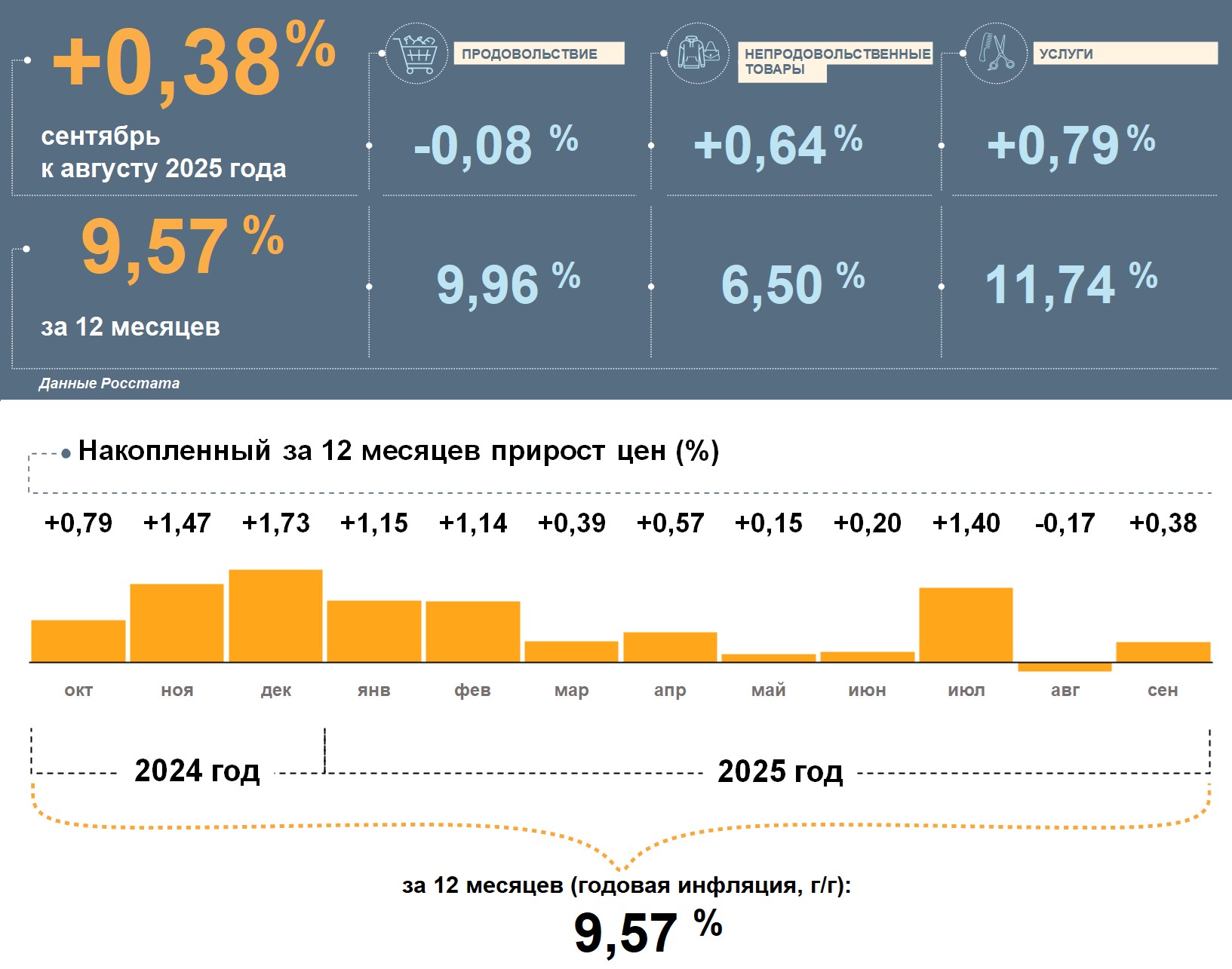 Цены в Рязанской области в сентябре 2025 года, по данным Росстата, выросли на 0,38% к августу. Годовая инфляция повысилась и составила 9,57%. Это выше, чем в целом по стране (7,98%).
