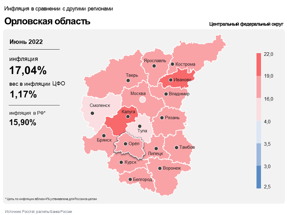 Информационно-аналитический комментарий об инфляции в Орловской области в июне 2022 года