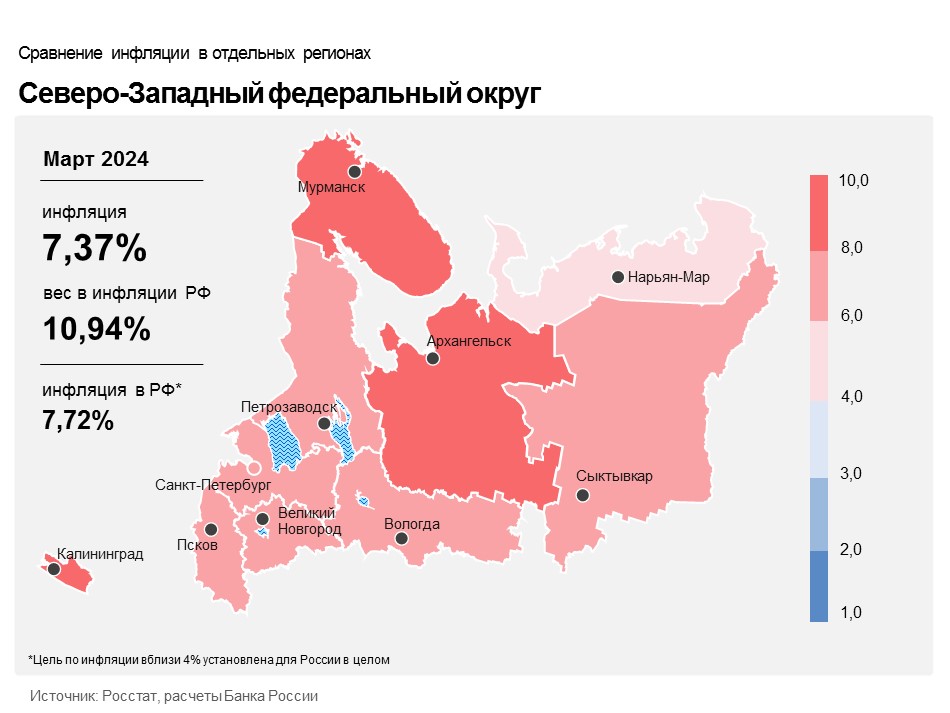Информационно-аналитический комментарий об инфляции в Северо-Западном федеральном округе в марте 2024 года