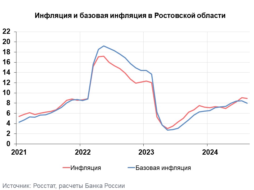 Годовая инфляция на Дону в августе 2024 года снизилась до 8,91% после 9,09% месяцем ранее. В основном это связано с расширением предложения ряда продуктов питания и непродовольственных товаров. Инфляция в регионе сопоставима с показателем по Южному федеральному округу (8,94%), но осталась ниже уровня в целом по стране (9,05%).