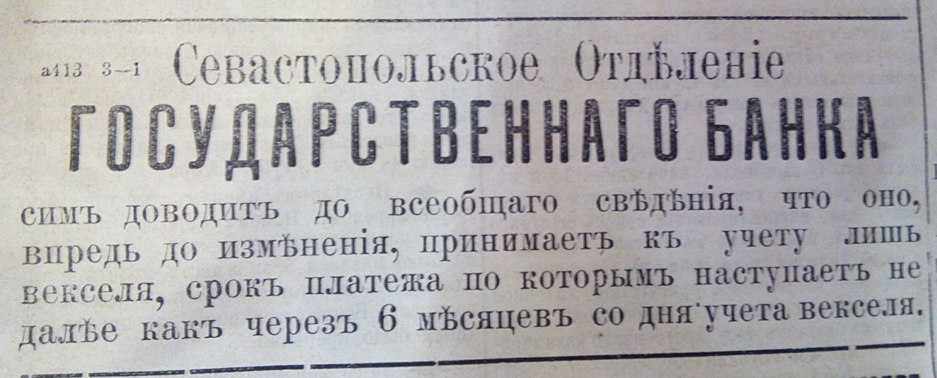 В 1882 году оборот Севастопольского отделения Государственного банка составлял более 30,5 млн. рублей, в 1889 году — 79 млн рублей. Старший инспектор Государственного банка Шумков тогда отмечал в своем отчете: «На мою долю выпадает приятный долг засвидетельствовать, что Севастопольское отделение — одно из лучших в составе филиалов Государственного банка».